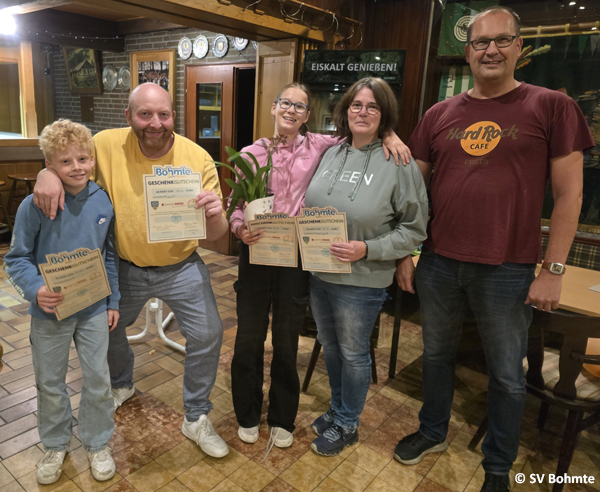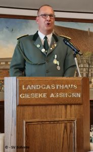 Abschließend wies Präsident Christian Tiemann auf die nächsten Vereinstermine hin. So findet am 17.10. ab 18.30 Uhr der nächsten Doppelkopfabend in der Schützenhalle Bohmte statt. Weitere Doppelkopftermine sind der 21.11.2025, 09.01.2026 und 20.02.2026. Am Samstag, 01.11.2025 nehmen die Damen des Vereins am Kreisköniginnenschießen in Schwagstorf teil und am 03.12.2025 beginnt für sie das diesjährige Bratenschießen mit Knobeln um 19 Uhr. Bratenschießen und Knobeln für alle Vereinsmitglieder ist dann am Donnerstag, 04.12.2025 ab 19 Uhr. Am Samstag, 06.12.2025 findet das Seniorenkaffe ebenfalls mit Bratenschießen und Knobeln statt. Hierzu wird noch gesondert eingeladen. Im Anschluss ab 17.30 Uhr können dann wieder alle Vereinsmitglieder bis 22 Uhr um die begehrten Braten und Preise schießen und knobeln. Die Braten- und Preisverleihung findet am Dienstag, 16.12.2025 um 19 Uhr in der Schützenhalle Bohmte statt.