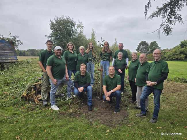 Auch der Schützenverein Bohmte hat sich der derzeit laufenden Baumpflanzchallenge gestellt. Vom Bohmter Bläserchor nominiert blieb dem Verein gerade einmal eine Woche Zeit, einen Baum auszuwählen, den geeigneten Standort zu finden und ausreichend Helfer für die Pflanzaktion zusammen zu trommeln. Für Vereinspräsident Christian Tiemann war dies zum Glück keine unlösbare Aufgabe.